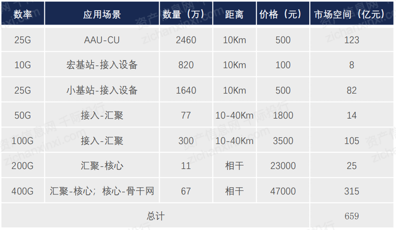 表:5G光模塊市場(chǎng)規(guī)模預(yù)測(cè)(單位:億元)