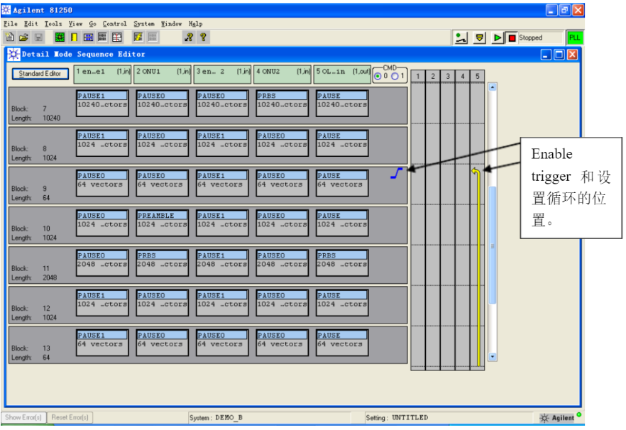 在第九個Block選擇enable trigger,把循環(huán)的箭頭也看拖到從觸發(fā)Block開始