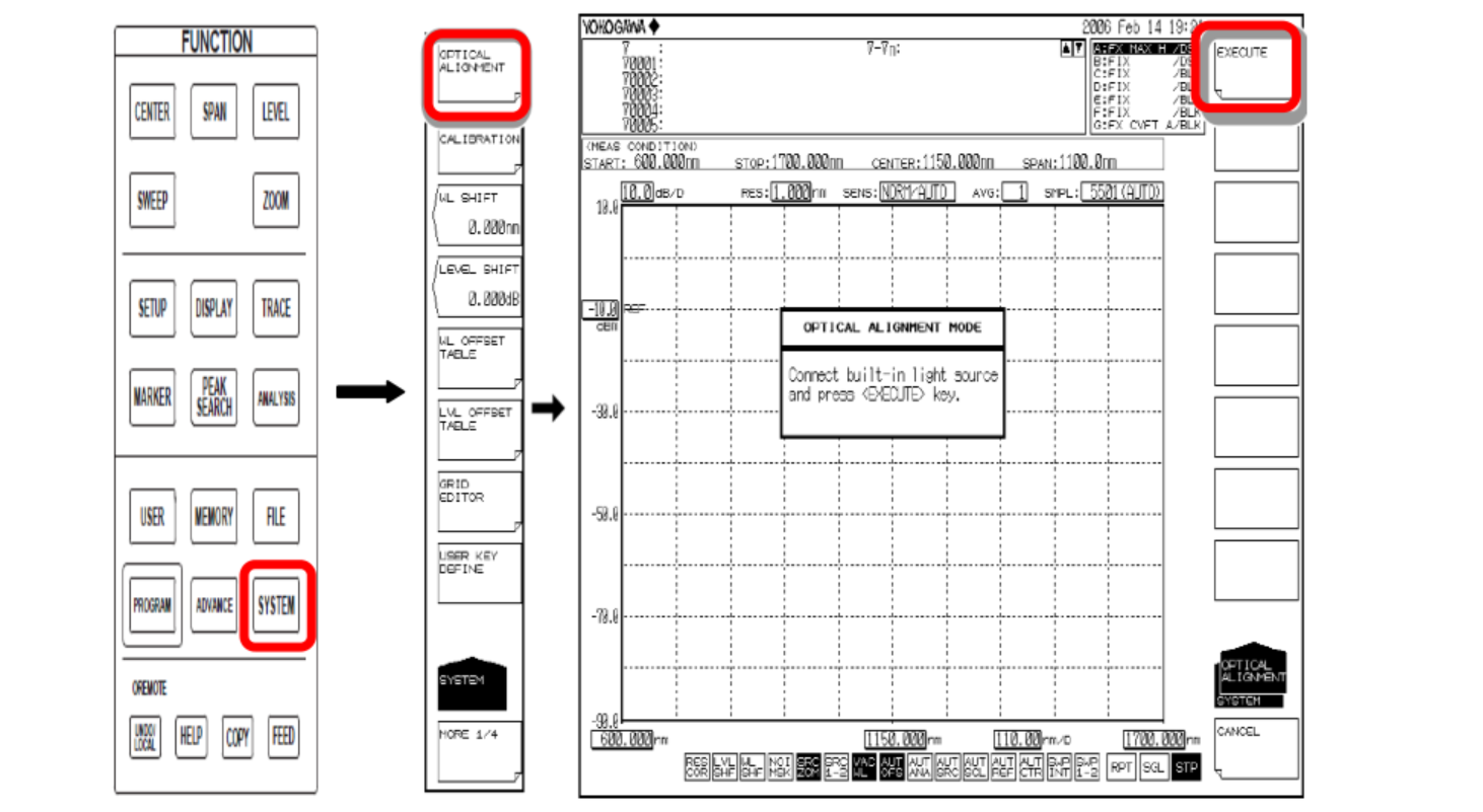 ③按 EXECUTE 軟鍵,執(zhí)行波長(zhǎng)校準(zhǔn)。 校準(zhǔn)結(jié)束后,返回之前得畫面。