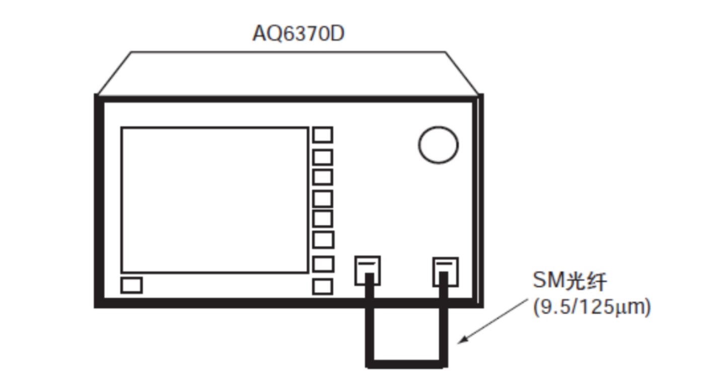 AQ6370D 開機(jī)校準(zhǔn),打開電源,FC-FC 接口得光纖將 AQ6370D 得光輸入連接器與光輸出連接器連接起來,如圖所示。