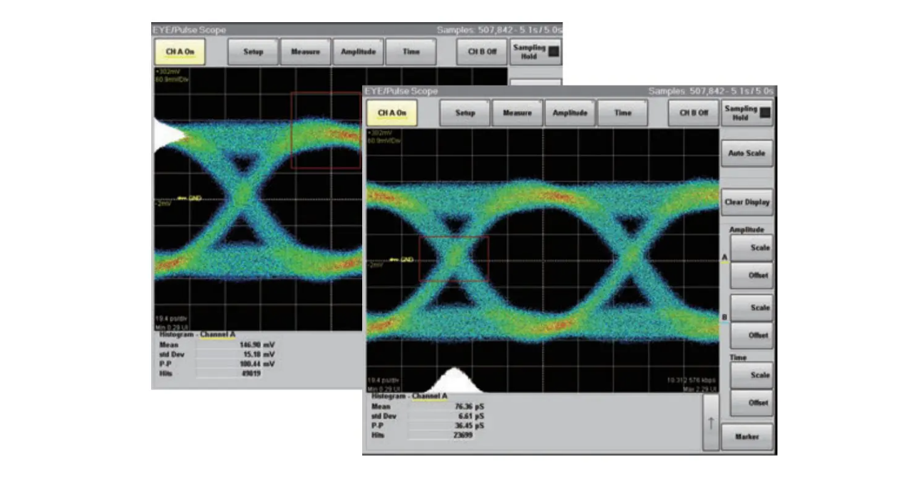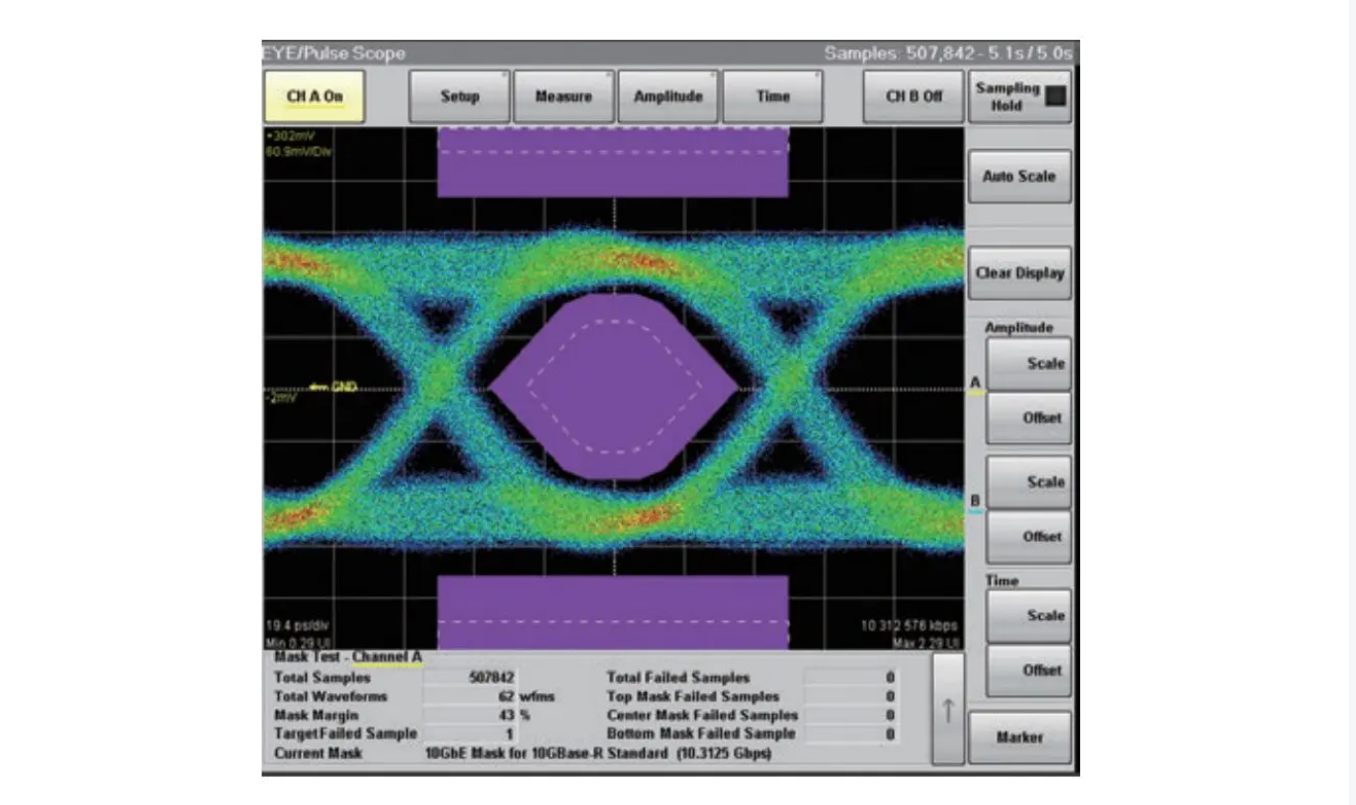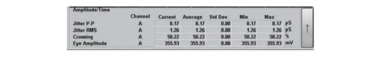 支持的測(cè)量包括:0電平、1電平、SNR、眼圖閉合率、眼圖振幅、眼圖高度、眼圖寬度、抖動(dòng)p-p、抖動(dòng)RMS、消光比、上升時(shí)間、下降時(shí)間、占空比失真、平均功率、OMA等。
