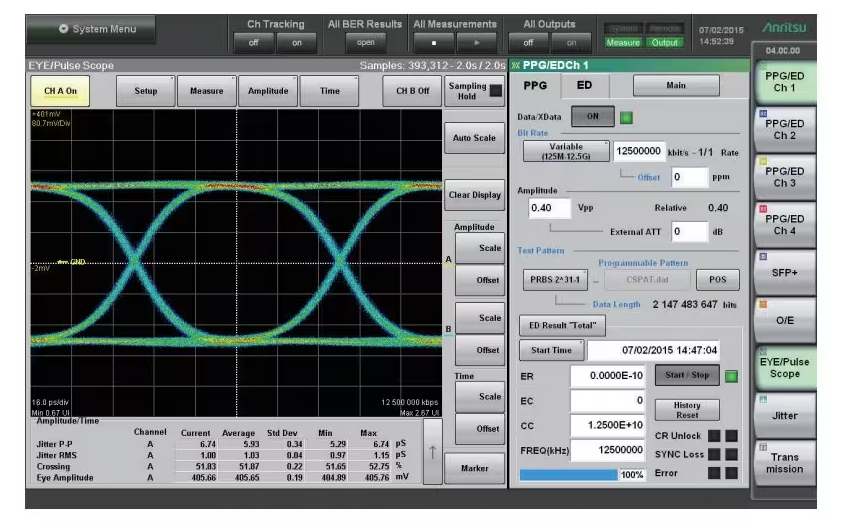 BERTWave MP2100B的功能,多合一4通道BER測(cè)量和眼圖分析