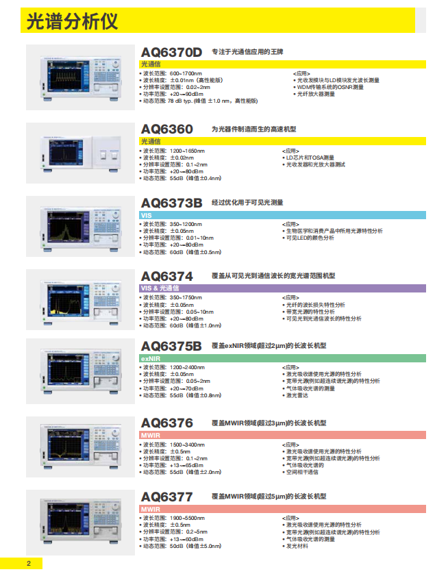 AQ6370D 光譜分析儀 行業(yè)和領(lǐng)域的應用: