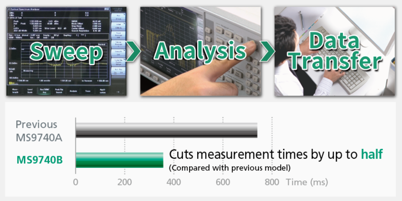 ?  高分辨率:MS9740B 的分辨率可以達(dá)到 0.01 nm(600 nm 到 950 nm),可以精確地測(cè)量光譜的細(xì)節(jié)。這對(duì)于評(píng)估頻譜寬度窄的光有源器件,如 FP-LD、DF-LD 等,是非常必要的。