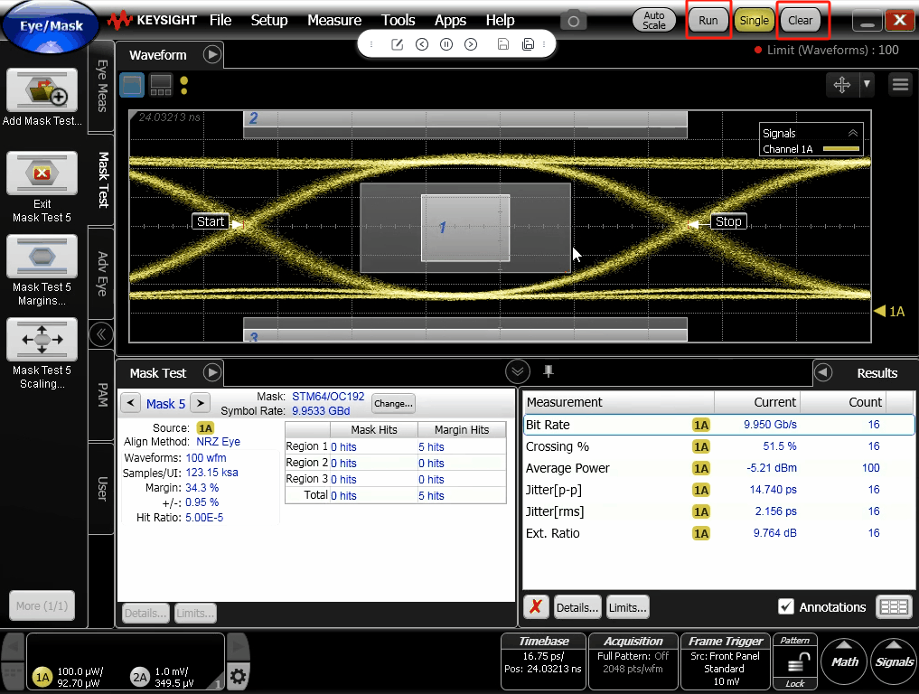 Hit Count:嚴格模式,不允許眼圖在Margin陰影有散點。
