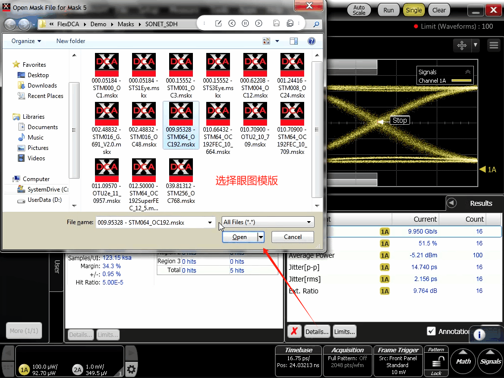 3.打開"Open Mask File for Mask 5",對話框,選擇眼圖模板。
