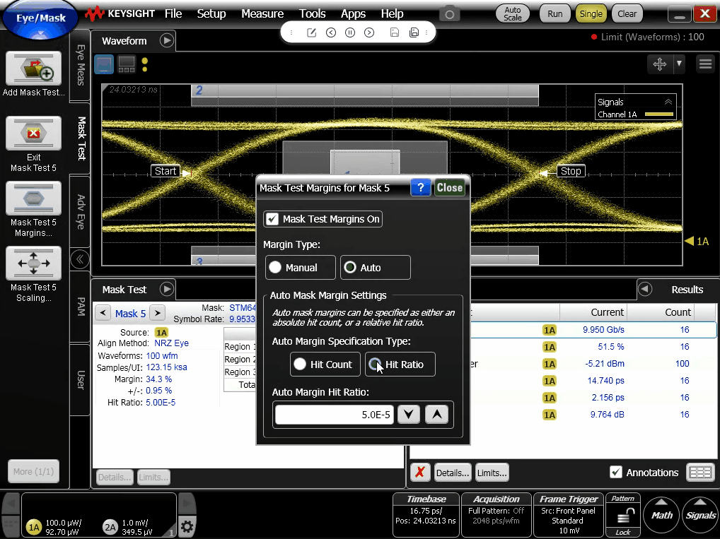 Hit Ratio:寬松模式,眼圖允許部分散點會落在Margin陰影處。