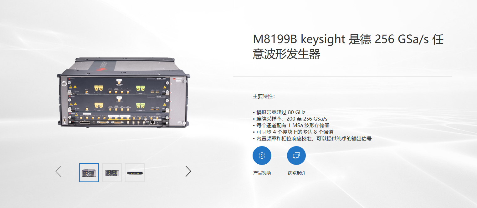 Keysight M8199B 任意波形發(fā)生器(AWG)是一款高性能信號(hào)源,專為研發(fā)工程師設(shè)計(jì),以支持開(kāi)發(fā)高達(dá) 160 GBaud 及以上速率的先進(jìn)設(shè)計(jì)。該設(shè)備能夠通過(guò)最多 8 個(gè)同步通道進(jìn)行高達(dá) 256 GSa/s 的采樣,擁有超過(guò) 80 GHz 的模擬帶寬。其內(nèi)置的頻率和相位響應(yīng)校準(zhǔn)功能確保輸出信號(hào)的純凈度。