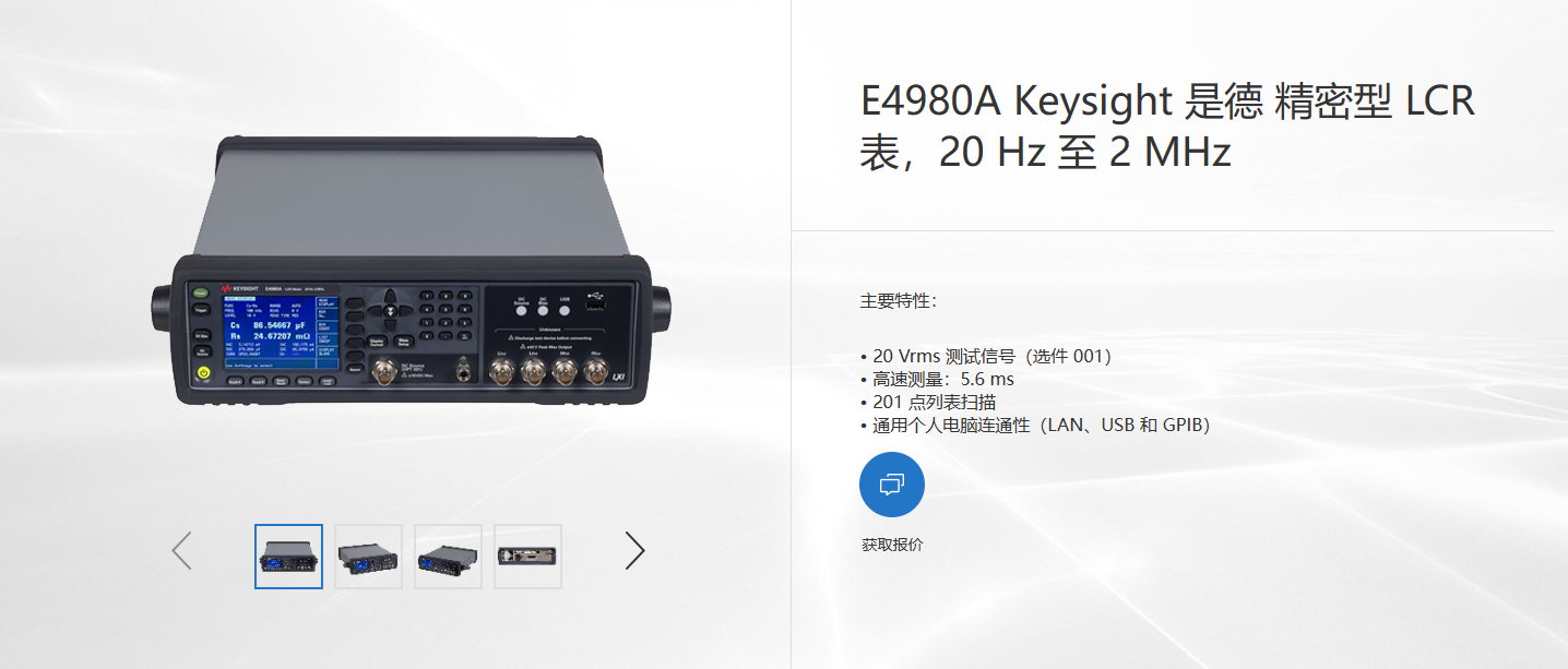 Keysight E4980A不僅適用于一般的研發(fā)和制造測試,還能在多種頻率范圍內(nèi)提供最佳的精度、速度和通用性,是組件與材料研發(fā)以及生產(chǎn)測試的理想工具。