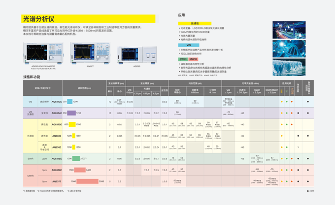 橫河AQ6373E/AQ6373B 光譜分析儀是一款專為可見光波長測量優(yōu)化的高性能光學光譜分析儀。它覆蓋的波長范圍在350 nm至1200 nm之間,具有高分辨率和近距離動態(tài)范圍,適用于醫(yī)療、生物和材料加工等領域的光譜測量需求。