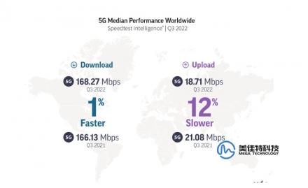 Ookla 在日前公布全球 10 個國家和地區(qū)的最快 5G 手機榜單之后,在今天公布的報告中分享了全球的 5G 網絡性能。在報告中顯示 2022 年第 3 季度全球 5G 網絡下行速度平均為 168.27 Mbps,相比較去年同期的 166.13 Mbps 快了 1%;但是平均上行速度為 18.71Mbps,比去年同期的 21.08Mbps 慢了 12%。