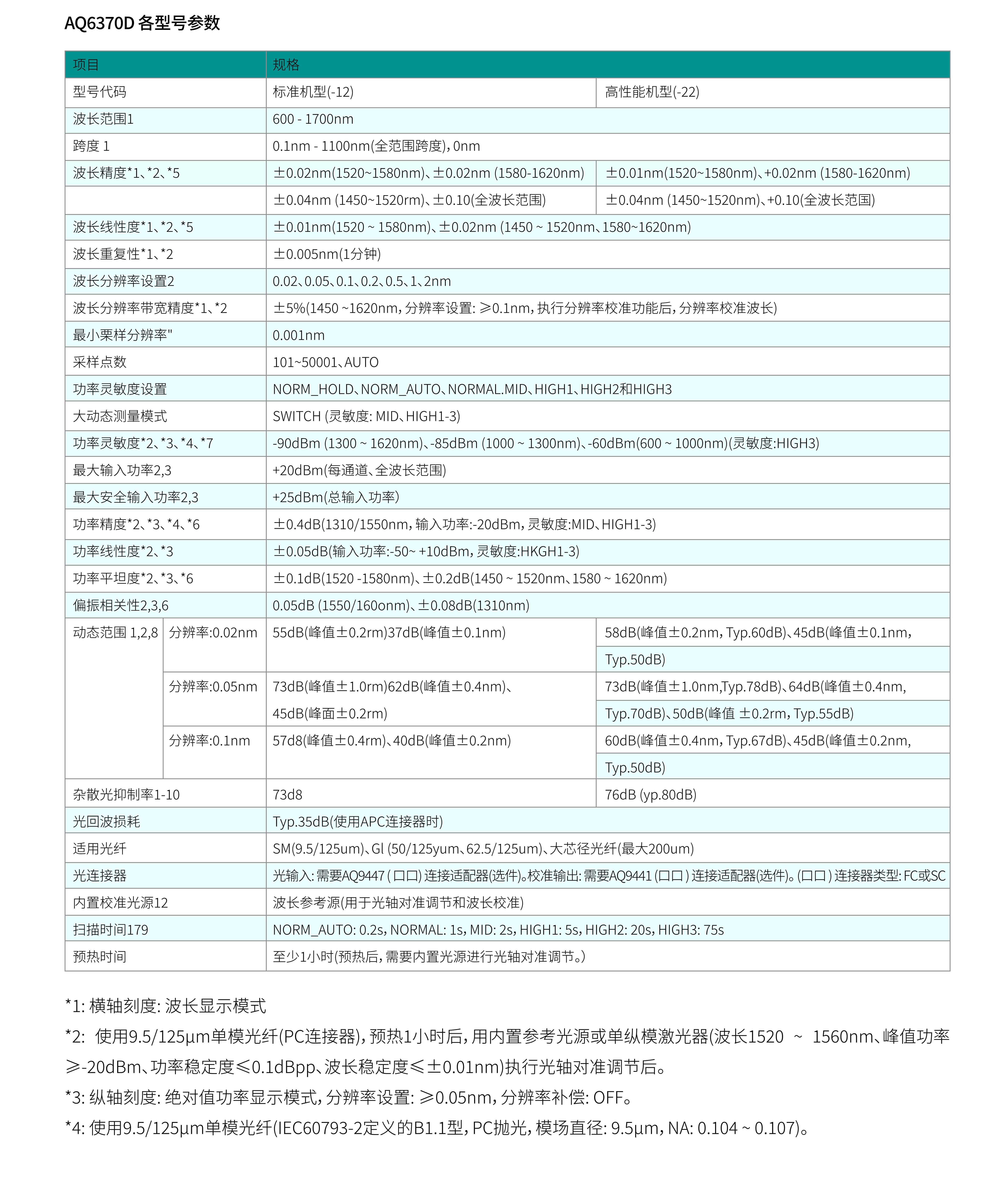 AQ6370D共有2種機(jī)型,分別是標(biāo)準(zhǔn)版和高性能版。高性能版可以提供的波長精度更高、動態(tài)范圍更大。